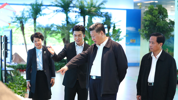 风起海之南,春到昆仑来。2018年4月13日上午,中共中央总书记、国家主席、中央军委主席习近平来到海南省博物馆,参观海南建省办经济特区30周年成就展,央视新闻联播特别拍摄了我司产品—生物质复合材料(木塑)。