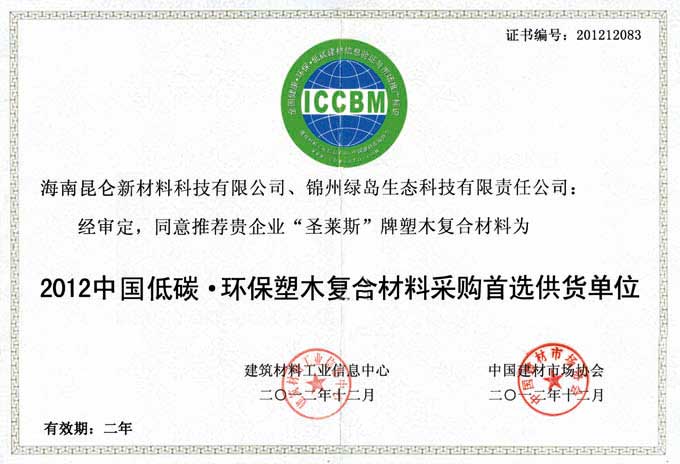绿色建材推荐产品证书